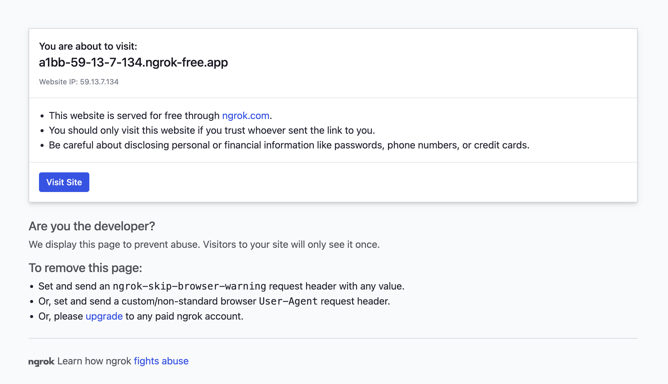 0 0 0.00 0.00 0.00 0.00 이때 https://a1bb-59-13-7-134.ngrok-free.app에 들어가게 된다면 웹사이트를 확인할 수 있다.